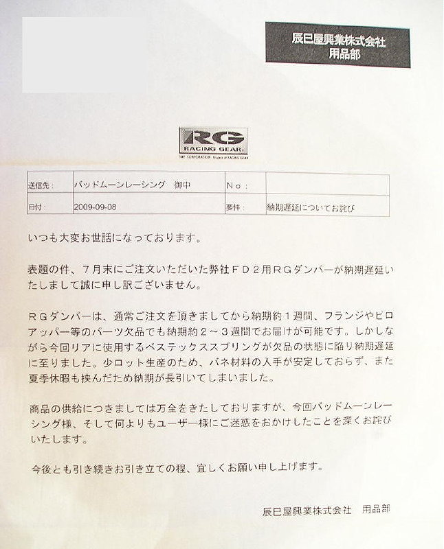 メーカー様からの納期遅延により謝罪が届きましたので包み隠さず公開いたします。