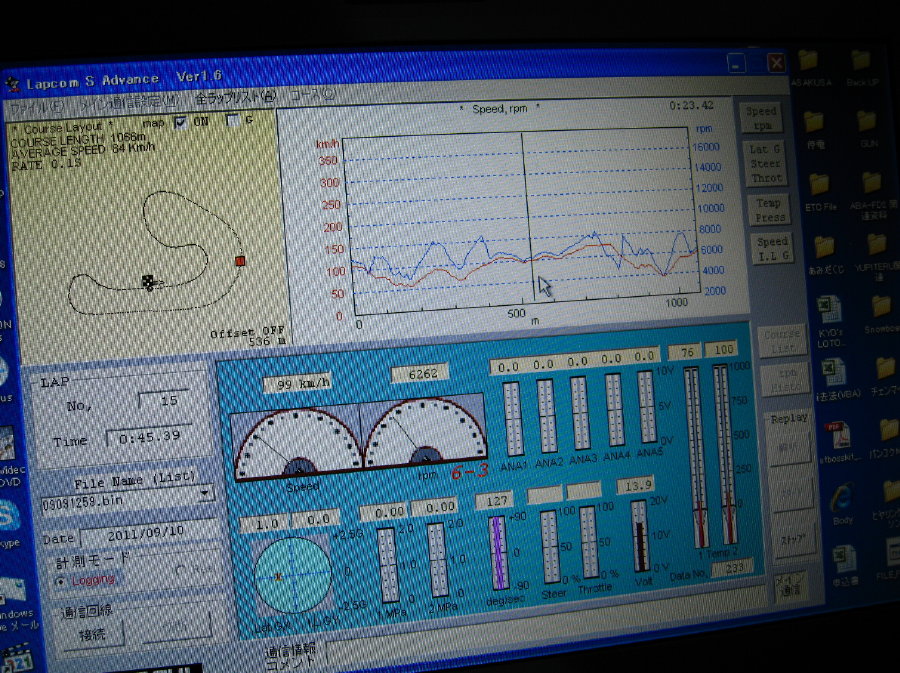 レース用モニター ラップコム装着車両も何台かいらっしゃいますので、