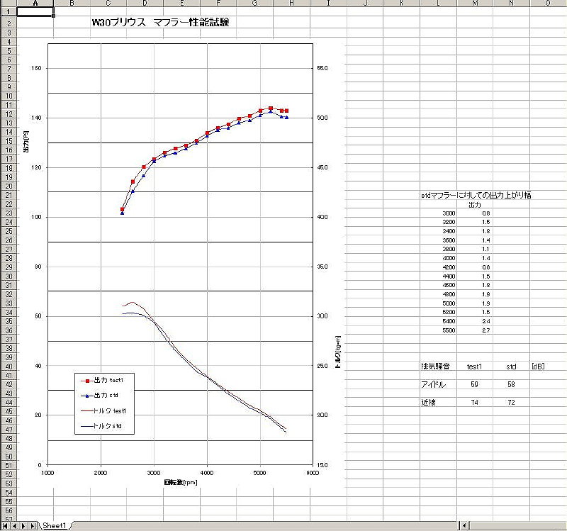 このパワーグラフでは、通常市販車検対応マフラー(ファッションマフラー)は、